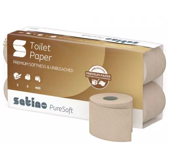 Satino PureSoft to pierwsze papiery toaletowe klasy premium wyprodukowane w całości z kartonów z recyklingu. Dzięki innowacyjnej technice obróbki Satino PureSoft od Satino by WEPA jest jednym z najbardziej miękkich papierów dostępnych na rynku, a przy tym jest tak samo delikatny jak luksusowy produkt z celulozy.