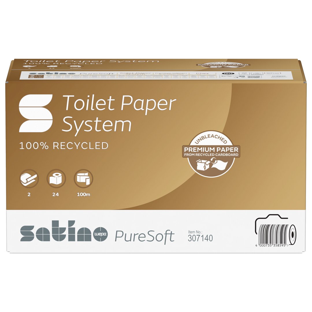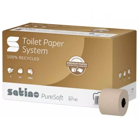 Satino PureSoft to pierwsze papiery toaletowe klasy premium wyprodukowane w całości z kartonów z recyklingu. Dzięki innowacyjnej technice obróbki Satino PureSoft od Satino by WEPA jest jednym z najbardziej miękkich papierów dostępnych na rynku, a przy tym jest tak samo delikatny jak luksusowy produkt z celulozy.
