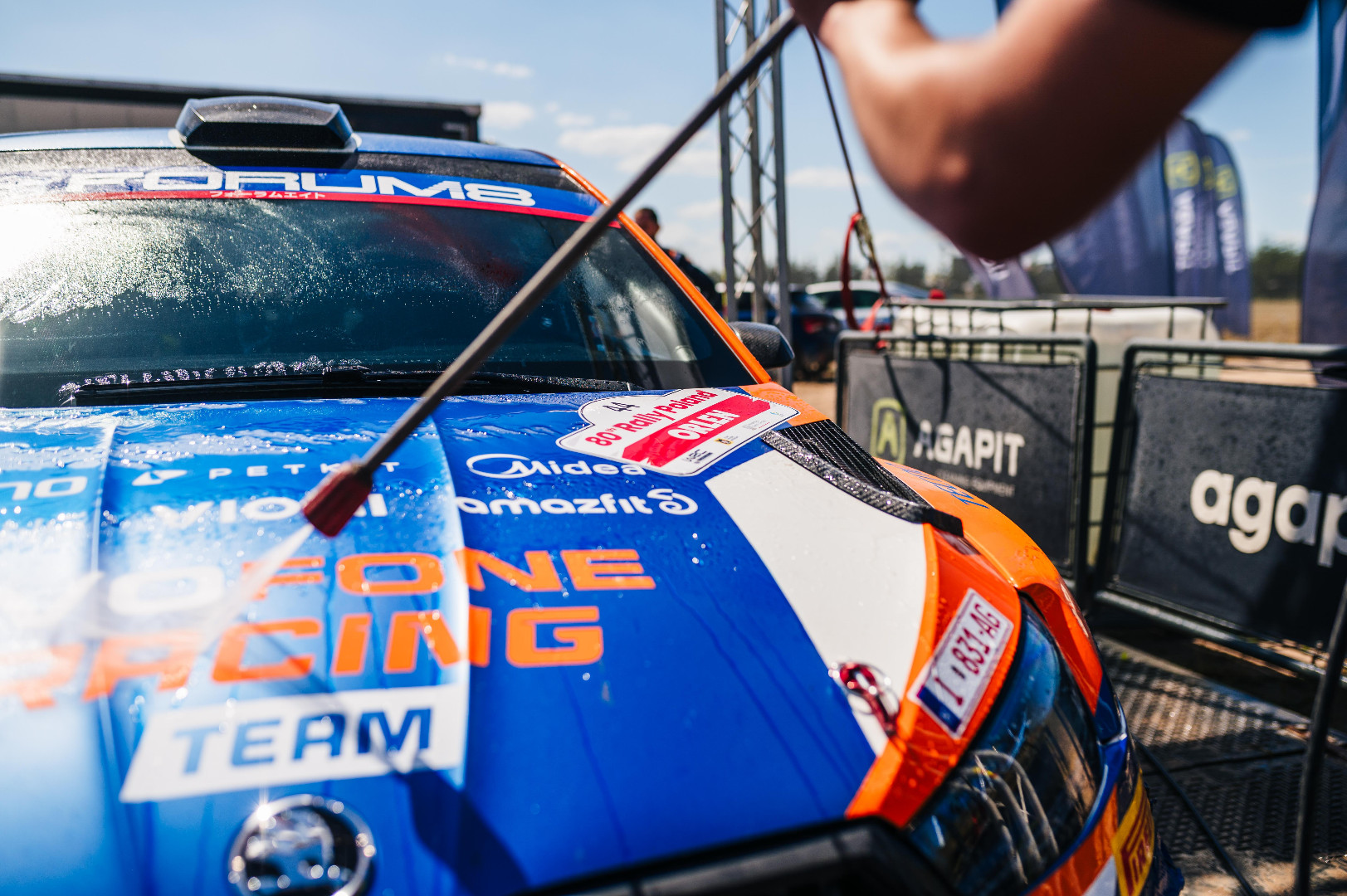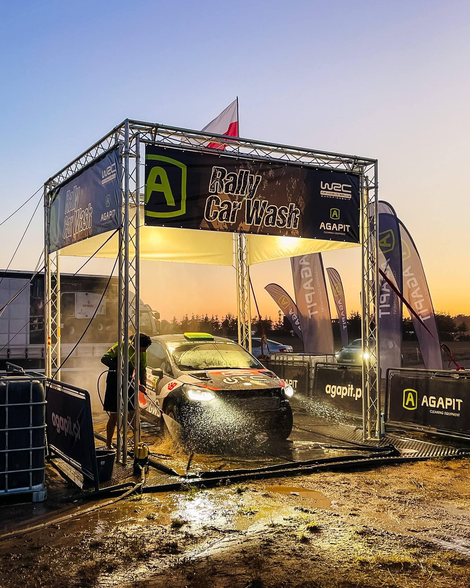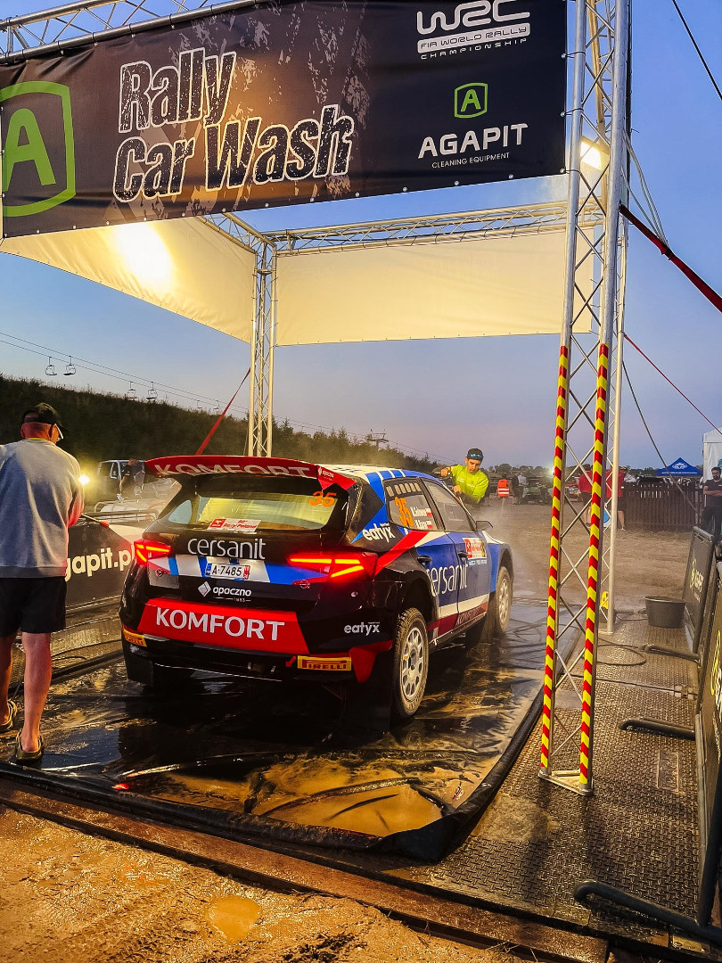 Jako partner Rajdu Polski przygotowaliśmy jak co roku myjnię dla samochodów rywalizujących na odcinkach specjalnych. Ekipa z Agapita wyposażona w specjalistyczne myjki Portotecnica myła i doczyszczała rajdówki. I to wcale nie ze względów estetycznych. Trudne szutrowe drogi są wyzwaniem dla elementów podwozia i karoserii. Czysty samochód pozwala na szybką diagnostykę i szybką ocenę stanu i układów.
