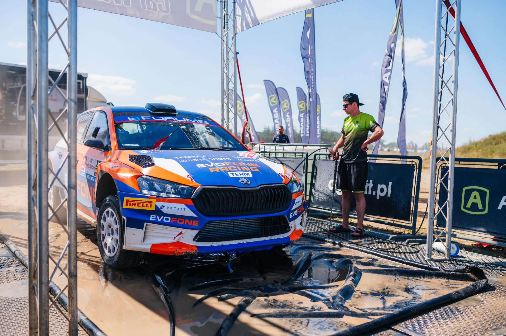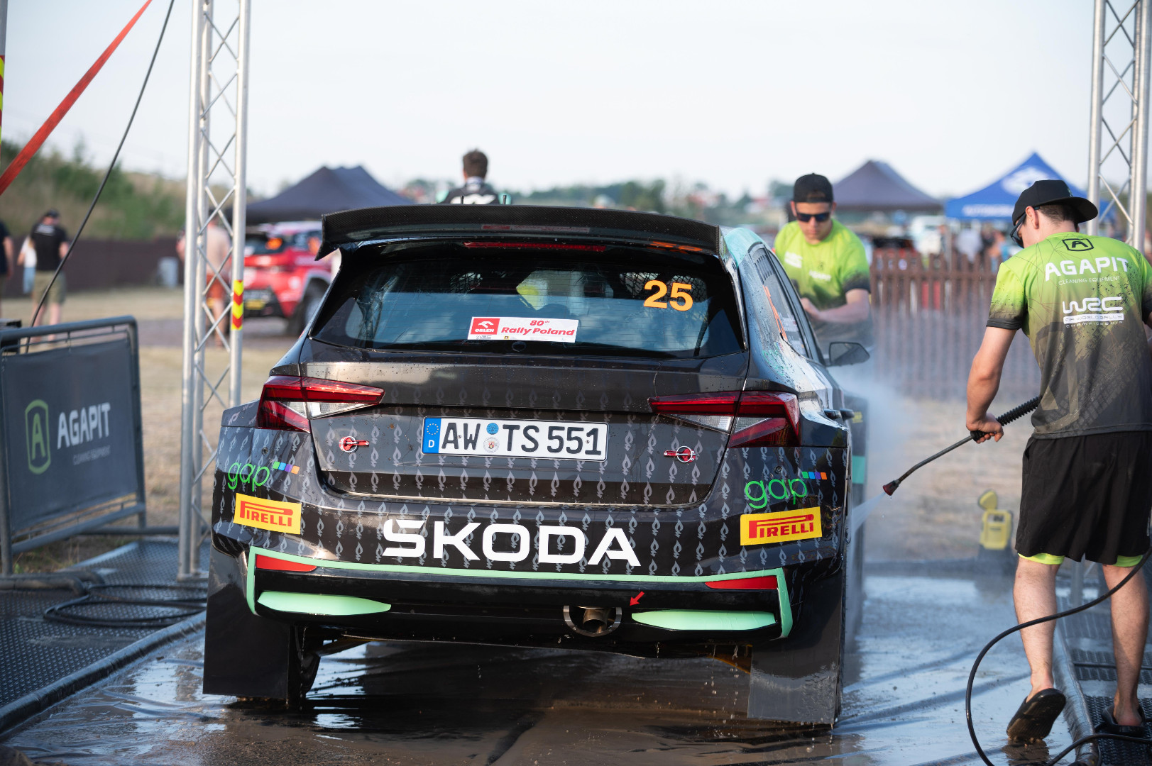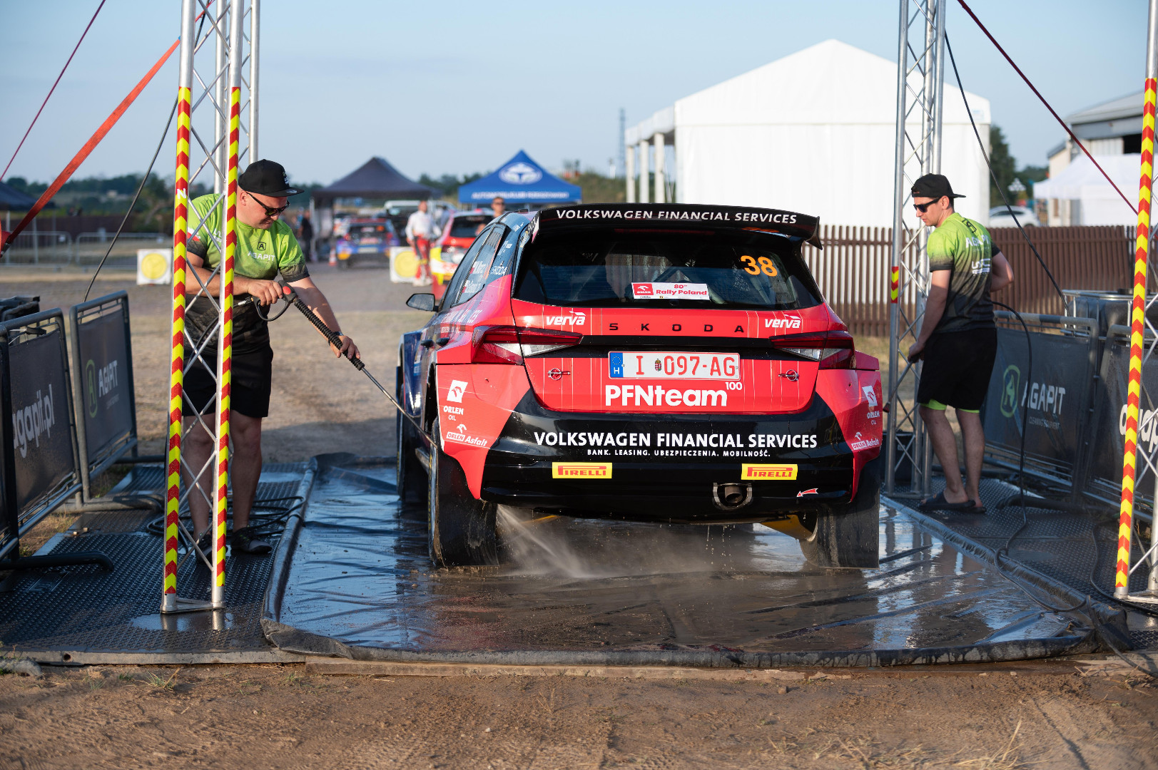 Jako partner Rajdu Polski przygotowaliśmy jak co roku myjnię dla samochodów rywalizujących na odcinkach specjalnych. Ekipa z Agapita wyposażona w specjalistyczne myjki Portotecnica myła i doczyszczała rajdówki. I to wcale nie ze względów estetycznych. Trudne szutrowe drogi są wyzwaniem dla elementów podwozia i karoserii. Czysty samochód pozwala na szybką diagnostykę i szybką ocenę stanu i układów.