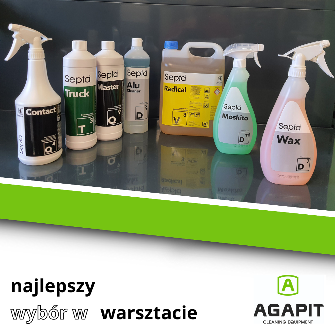 A co konkretnie produkuje Agapit PM? Przede wszystkim wysokiej jakości chemię Septa, ale także półprofesjonalną linię Septima. Tu znajdziesz więcej informacji o naszych środkach myjących w branży cleaningowej.