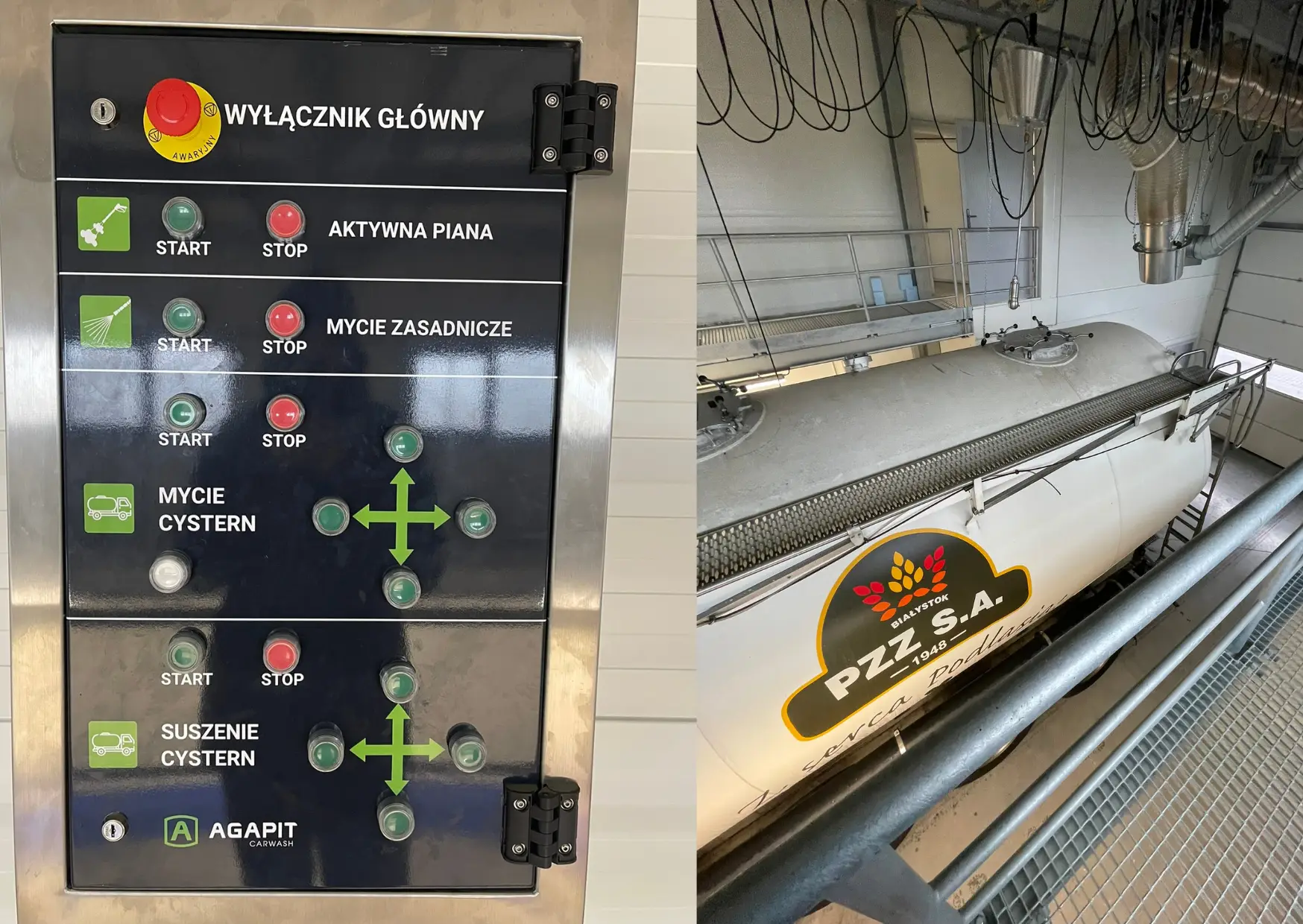 Agapit jest producentem chemii profesjonalnej oraz detergentów do myjni Septa. Cysterny z zewnÄ…trz sÄ… myte sprawdzonÄ… Septa Speed. W tym konkretnie wdrożeniu klient używa także specjalnych Å›rodków dedykowanych do branży spożywczej do mycia cystern wewnÄ…trz.