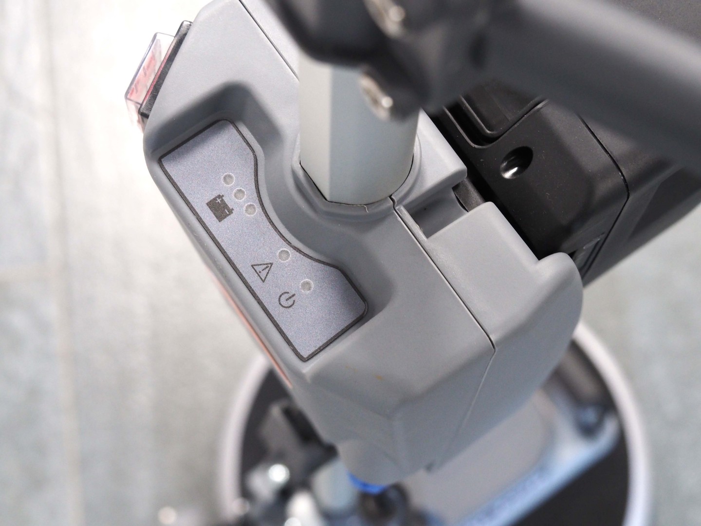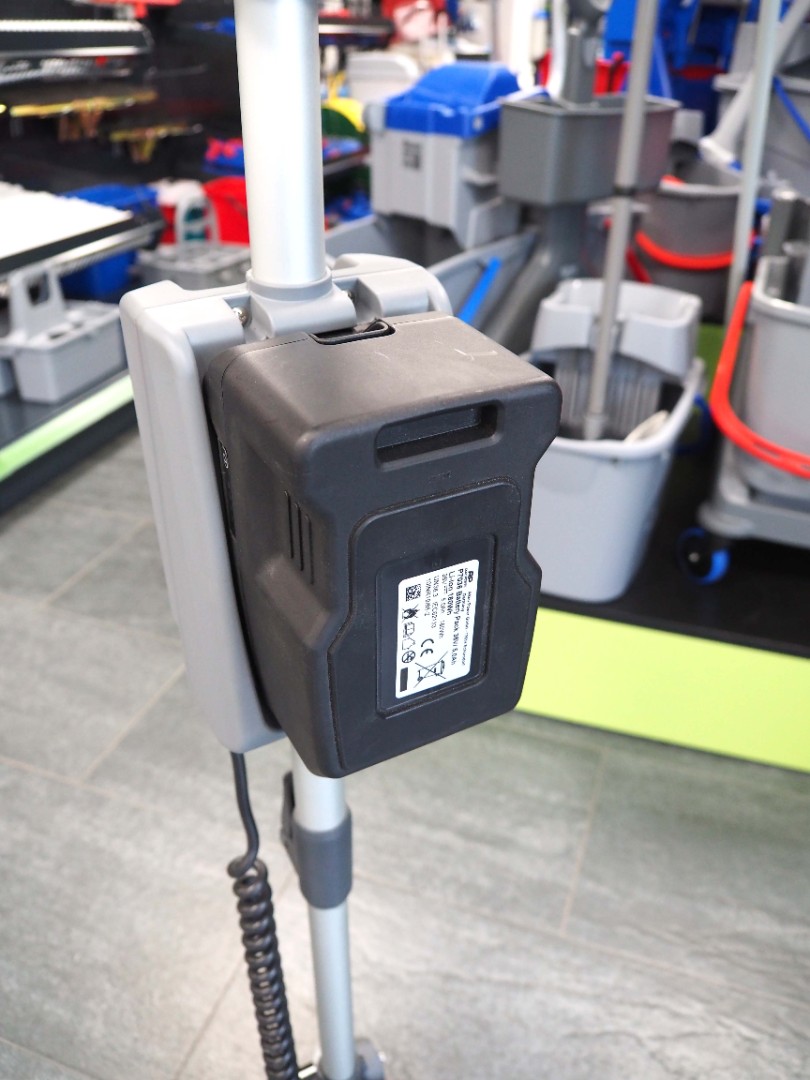 - Mobilność i ergonomia – praca bez przewodów, łatwy transport dzięki tylnych kółkach i składanej rączce.