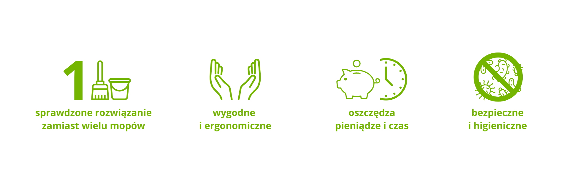 - oszczędność – jeden system zastępuje wiele różnych rodzajów mocowania mopa, co oznacza mniejsze koszty zakupu.