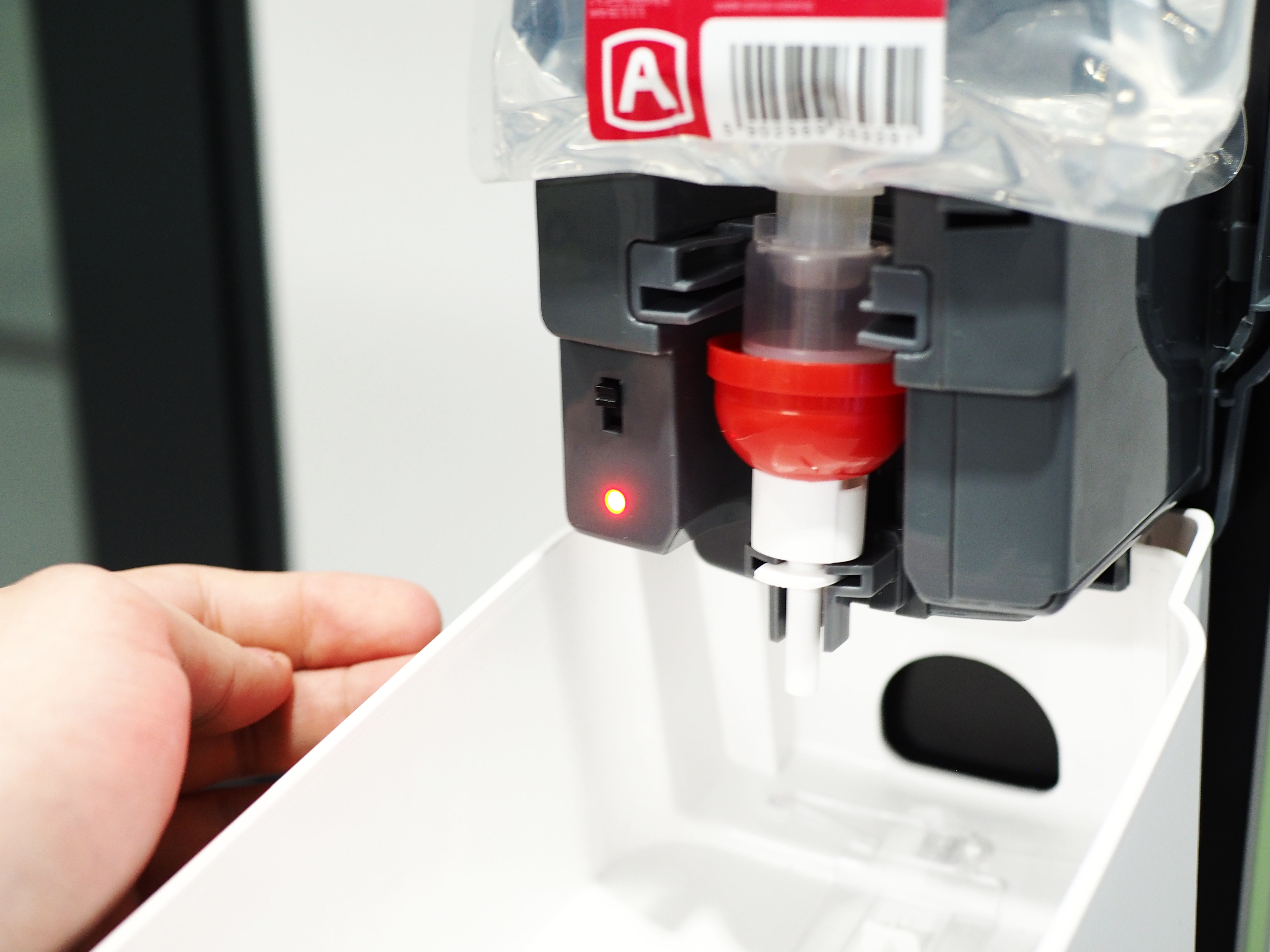 System wymiennych naboi do dozowników Safe-Pack to najwyższy poziom higieny i jakości. Dzięki zamkniętej budowie wkłady zachowują sterylną czystość bez kontaktu z dozownikiem i środowiskiem zewnętrznym. Zamknięta budowa wyklucza odlewanie, rozcieńczanie i inne patologiczne praktyki dając nam 100% gwarancji efektu dezynfekcji. Tak nabój bardzo łatwo wymienić bez ryzyka rozlewania produktu poza dozownik. Biorąc pod uwagę, że stacje dozowania będą wyposażeniem nie tylko przestrzeni sanitarnych czystość wymiany i brak ryzyka uszkodzenia wykładzin czy powierzchni stężonym alkoholem jest ważna.