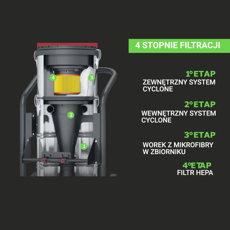 To wszystko sprawia, że ten typ odkurzacza przemysłowego się nie zapycha. Dodatkowo zaawansowane odkurzacze przemysłowe do zbierania pyłów posiadają elektryczne otrząsacze filtrów lub systemy rewersji powietrza pełniące podobna rolę.