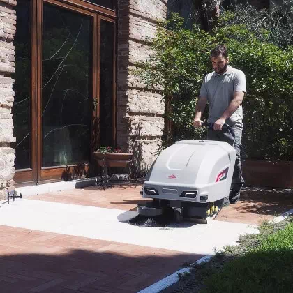 Zamiatarka CS 500 firmy Comac jest odpowiednia do sprzątania niewielkich powierzchni wewnątrz i na zewnątrz obiektów lub bardzo zatłoczonych średnich/dużych przestrzeni. Doskonale sprawdza się na powierzchniach do ok. 2600 m². Zamiatarka przemysłowa jest zasilana bateryjnie za pomocą baterii oraz wyposażona w trakcję, która ułatwia pracę maszyną . Jej szerokość czyszczenia ze szczotką boczną wynosi 65 cm.