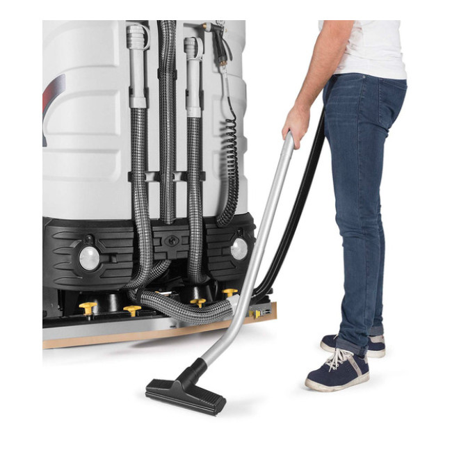 Zestaw ssący składający się z węża ssącego, rury i ssawy podłogowej. Umożliwia wysuszenie posadzki w miejscach, które są niedostępne dla maszyny czyszczącej.