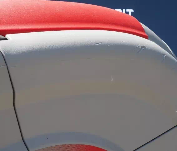 Urządzenie w bardzo dobrym stanie technicznym. Posiada uszkodzoną naklejkę na panelu sterującym, głęboko zarysowany zbiornik brudnej wody oraz zacieki po wlewaniu chemii. Na platformie lieliczne odpryśnięcia farby.