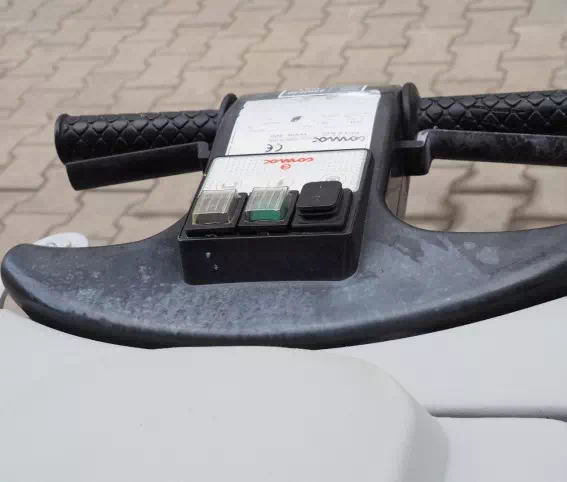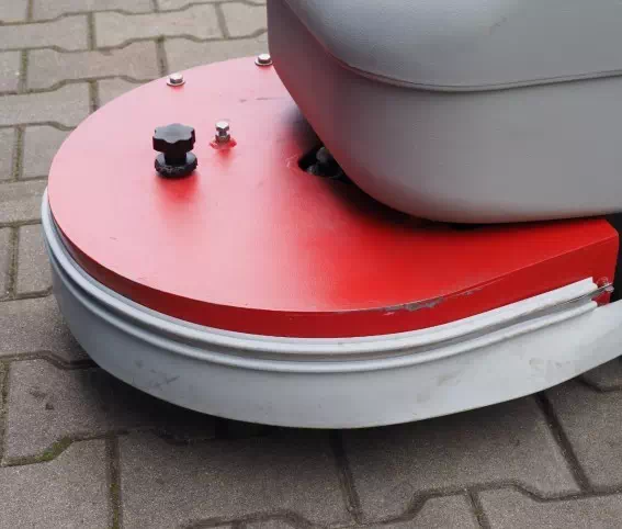 Maszyna używana w bardzo dobrym stanie, posiada drobne odpryski na platformie szorującej, ślady po zmytych naklejkach oraz nieliczne obtarcia na zbiornikach. Panel urządzenia jest wyblaknięty.