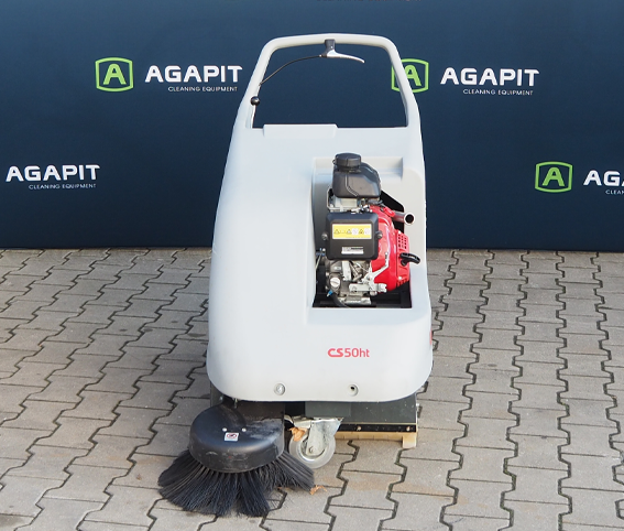 CS50 jest kompaktową zamiatarką prowadzoną o bardzo dużej zwrotności. Rączka wykonana z wygodnego plastiku sprawia, że operowanie dźwignią sterującą jest niezwykle proste. Kiedy zamiatana powierzchnia jest mokra lub wilgotna, konieczne jest wyłączenie ssawy. Szczotka boczna ułatwia sprzątanie w narożniakch oraz wdłuż ścian. Filtr panelowy, dzięki dużej powierzchni filtracyjnej, niezwykle skutecznie zatrzymuje cząsteczki kurzu. (Obecnie dostępna jest również wersja „zmywalna”, wielokrotnego użytku). Przednie i boczne osłony odgrywają ważną rolę, zapobiegając wzbijaniu się kurzu podczas pracy zamiatarki.CS 50 HT PF jest zamiatarką spalinową, z wbudowaną trakcją i filtrem poliestrowym.