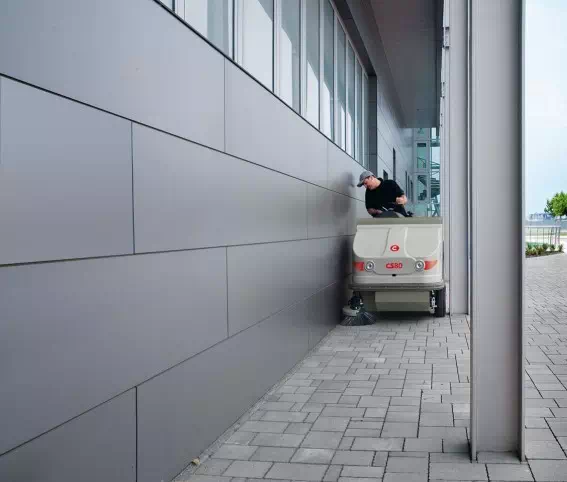 Zamiatarki przemysłowe CS 80 są przeznaczone są do sprzątania dużych powierzchni lub małych, wąskich, zatłoczonych przestrzeni. Umożliwia to bardzo kompaktowa, a jednocześnie wyjątkowo solidna rama wokół szczotki centralnej. System hydrauliczny zaprojektowany tak, aby ograniczać straty oraz utrzymywać optymalne wartości temperatury oleju podnosi wydajność i minimalizuje zużycie energii. Dzięki połączeniu tych elementów zużycie jest znacznie mniejsze niż w przypadku poprzedniego modelu, czego rezultatem jest dłuższy, twający do 4 godzin, cykl pracy maszyny. (Wersje CS90B-CS110B - baterie 480 Ah C5).