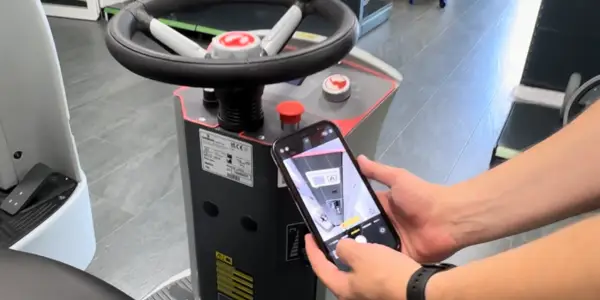 Kod QR na maszynie pozwala na szybkie połączenie z serwisem i zamówienie części zamiennych. Zyskujesz też dostęp do instrukcji obsługi i karty technicznej w jedną sekundę.