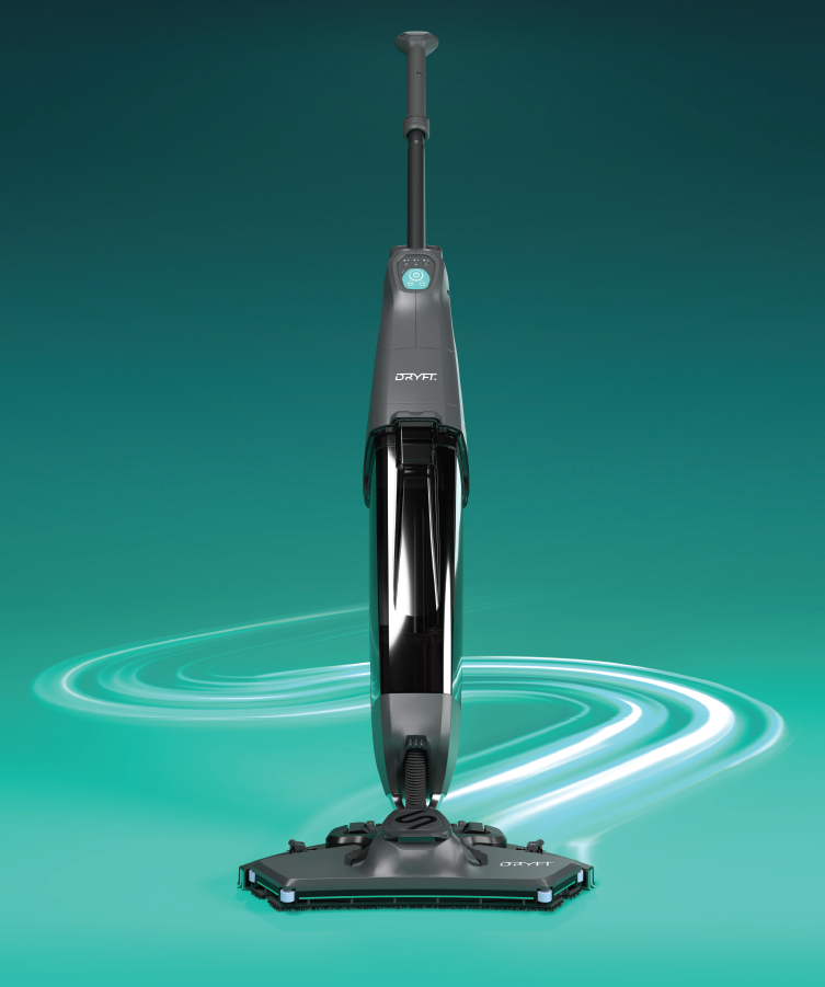 Wymienny system baterii DRYFT Core-ion umożliwia nieprzerwaną pracę przez 1 godzinę i 15 minut oraz możliwość użycia kolejnej baterii do wydłużenia tego czasu, a magnetycznie montowany uchwyt padów i koła transportowe gwarantują wygodę w codziennym użytkowaniu.