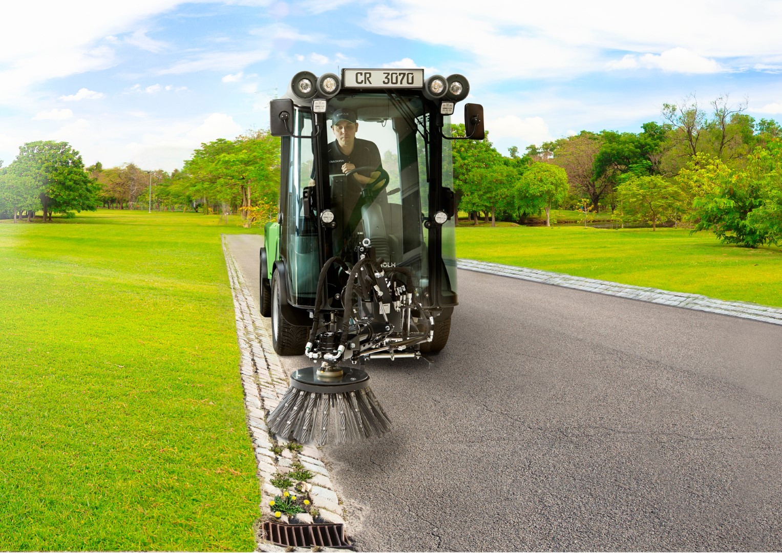 - regulację hydrauliczną - szczotkę do chwastów można regulować za pomocą układu hydraulicznego maszyny. Jego elastyczność umożliwia czyszczenie wokół latarni na poziomie 3/4