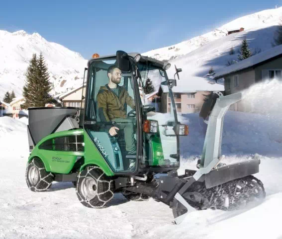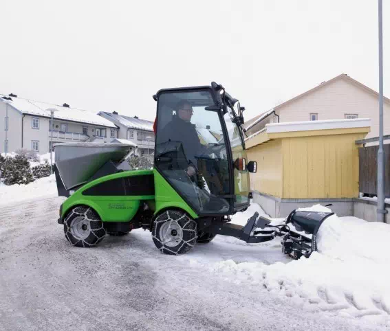 Maszyna komunalna Egholm jest niezwykle zwrotna a wydajny napęd 4WD zapewnia jej odpowiednią dzielność w terenie i w pracy zimą.