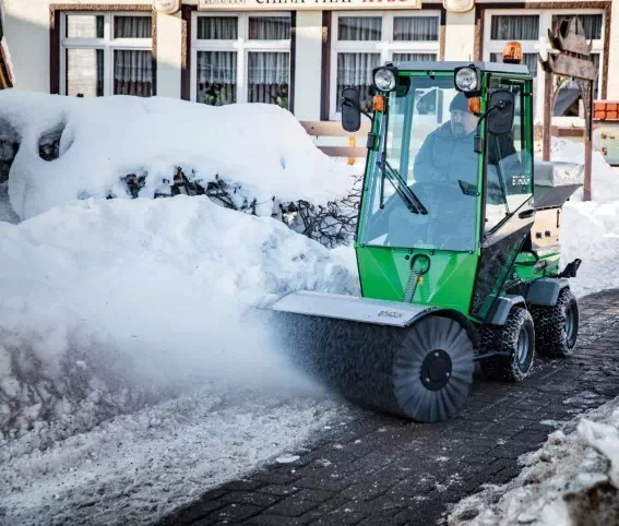 Maszyna komunalna Egholm jest niezwykle zwrotna. Wydajny napęd 4WD zapewnia jej odpowiednią dzielność w terenie i w pracy zimą.
