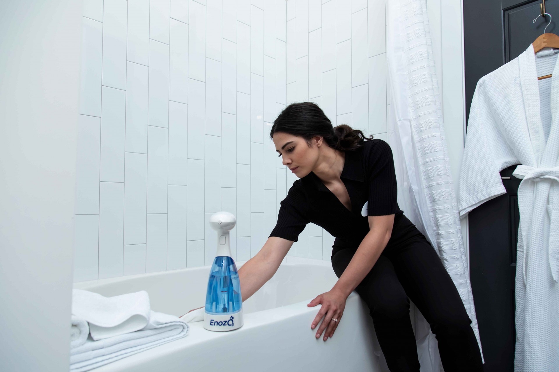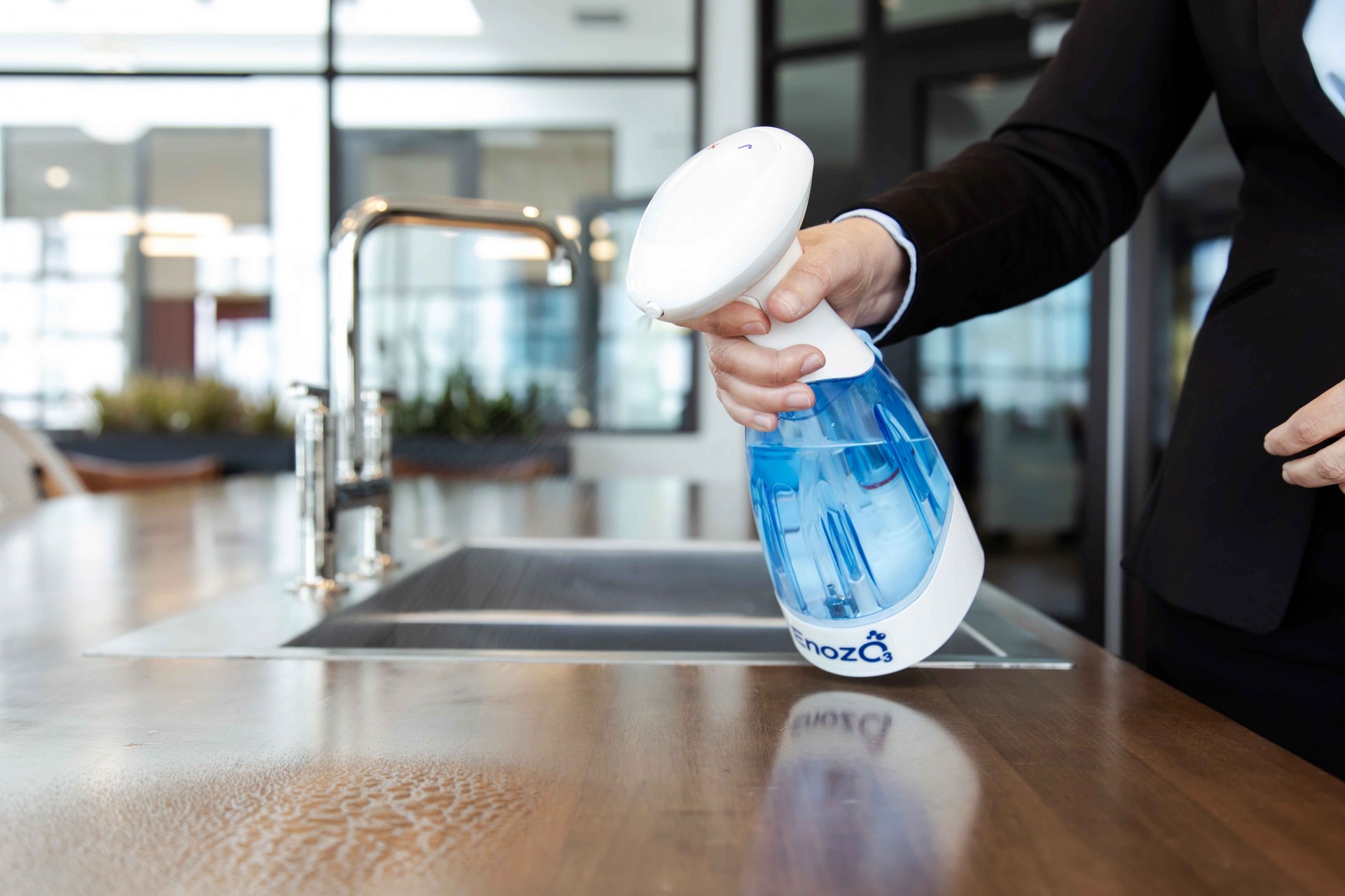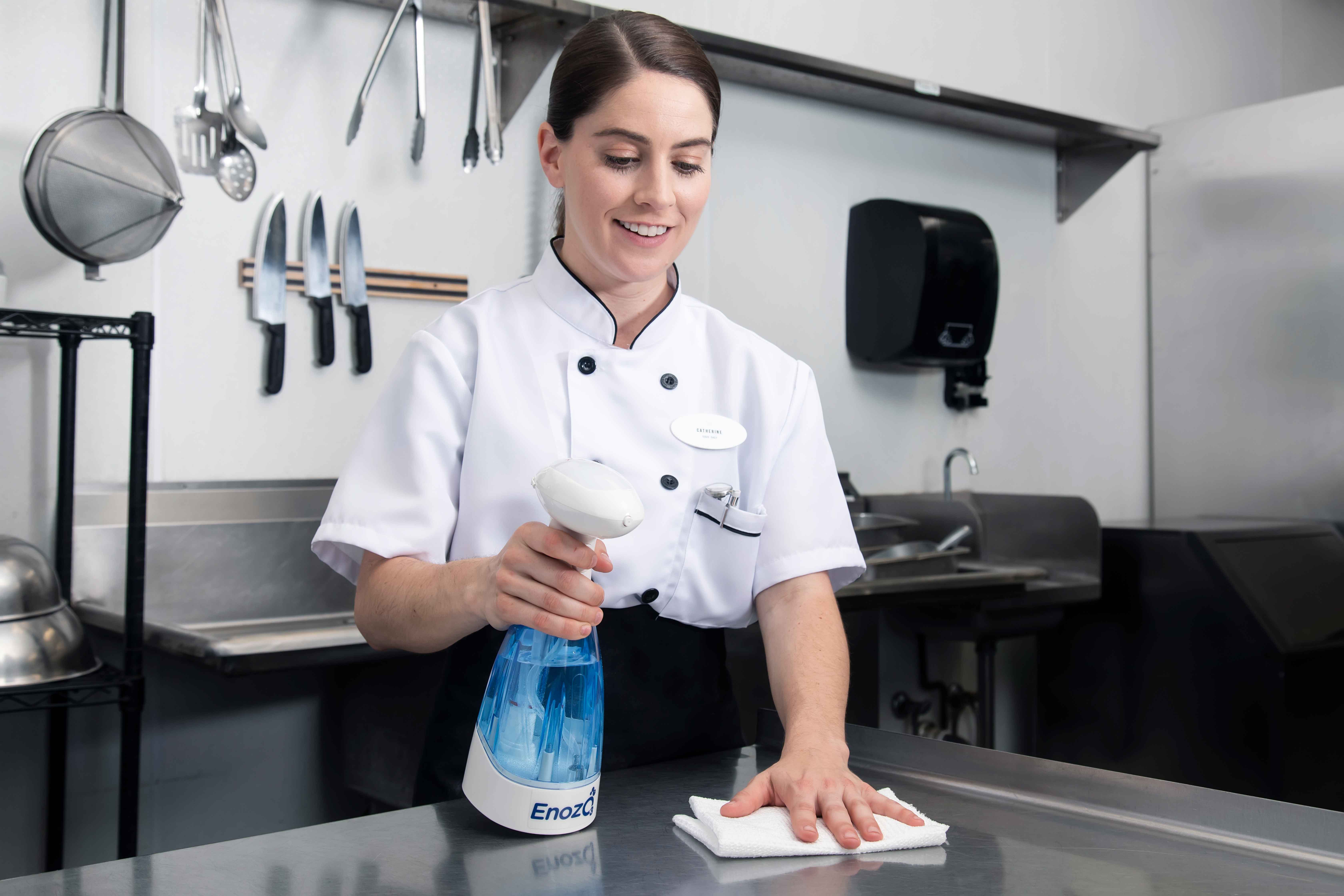 EnozoPRO zastępuje tradycyjne środki czyszczące i odkażające, nasycając wodę pitną małymi cząsteczkami ozonu. Butelkę można ładować średnio do 5000 razy, zastępując setki galonów tradycyjnych chemicznych środków czyszczących i odkażających.