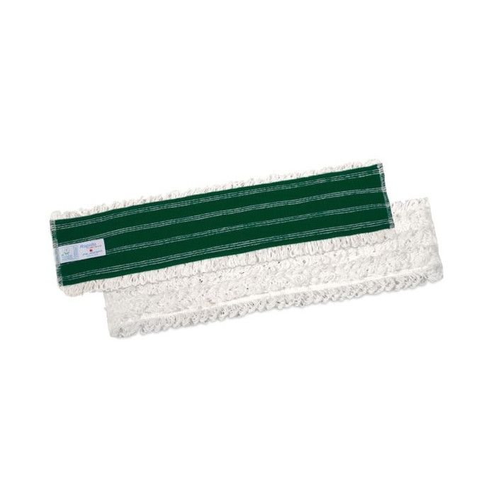 Mop rapido do systemu Velcro 40x10 cm z zielonym tyłem. Mikrofibra jest to włókno syntetyczne, które z łatwością wnika wgłąd nierówności i porów podłogi, zbierając nieczystości i zatrzymując je do czasu płukania mopa. Mop pasuje do wszystkich rodzajów podłóg wewnętrznych (szczególnie porowatych) o średnim stopniu zabrudzenia.