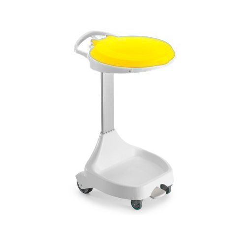 Wózek delta w kolorze białym, z uchwytem na worek 120L i żółtą pokrywą