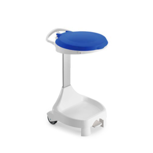Wózek delta w kolorze białym, z uchwytem na worek 120L, 2 kołami i 2 stopami, z niebieską pokrywą