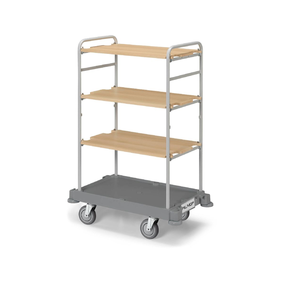Wózek hotelowy Morgan hotel 600 posiada 3 drewniane półki, służące do przewożenia bielizny, ręczników, lub innych potrzebnych rzeczy w hotelach i pensjonatach.