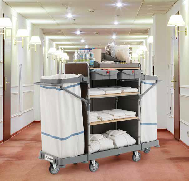 Linia wózków hotelowych Morgan Hotel jest elegancka, prosta i pasuje do każdego otoczenia. Spełnia wszelkie potrzeby dotyczące sprzątania w hotelach.