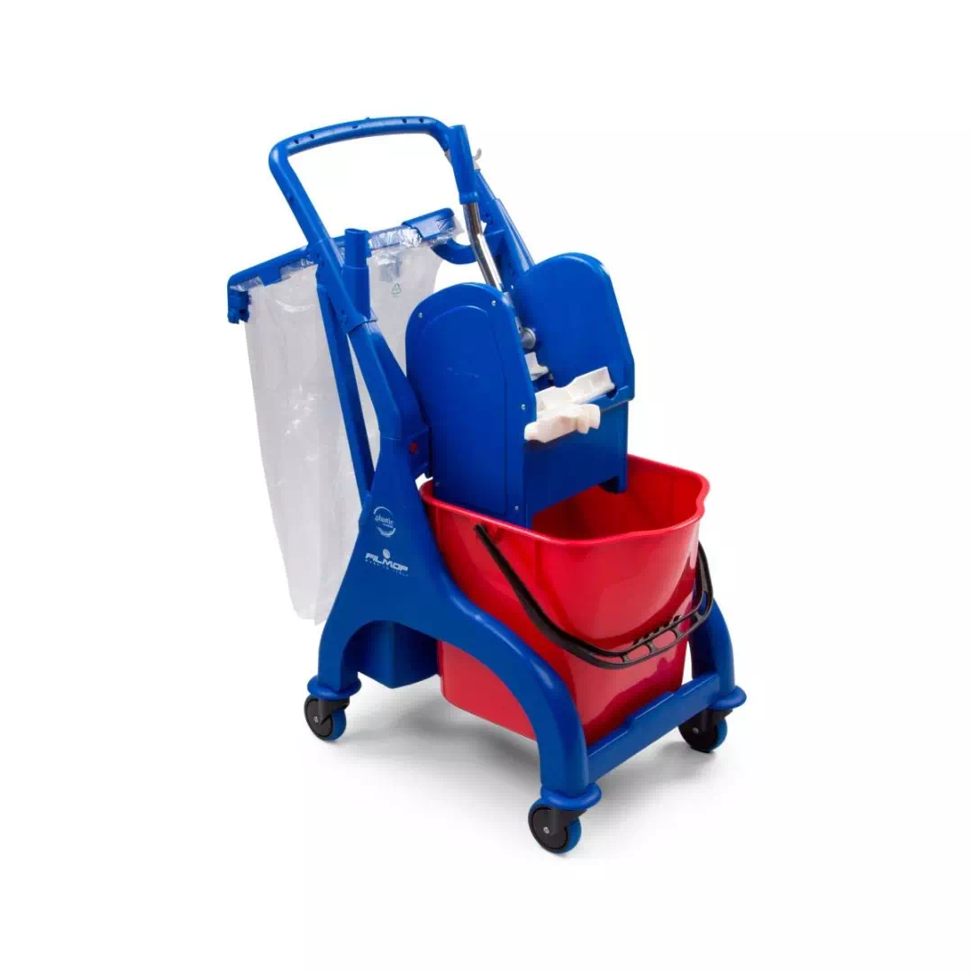 Multifunkcyjny wózek, używany do zbierania śmieci i zmywania podłóg na niewielkich powierzchniach. Zrobiony z wysokiej jakości tworzywa sztucznego. Cała rama jest jedną częścią dzięki czemu wózek jest łatwy do umycia.