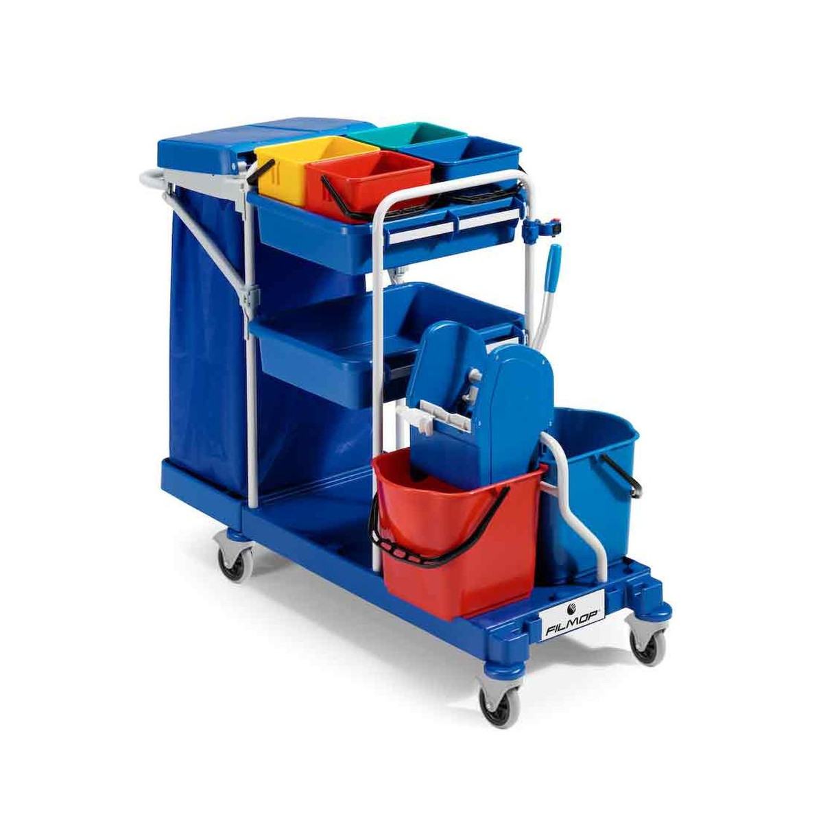 Wózek wielofunkcyjny, idealny do miejsc, w których wymagane jest odkurzanie, zbieranie śmieci, mycie podłóg i czyszczenie powierzchni