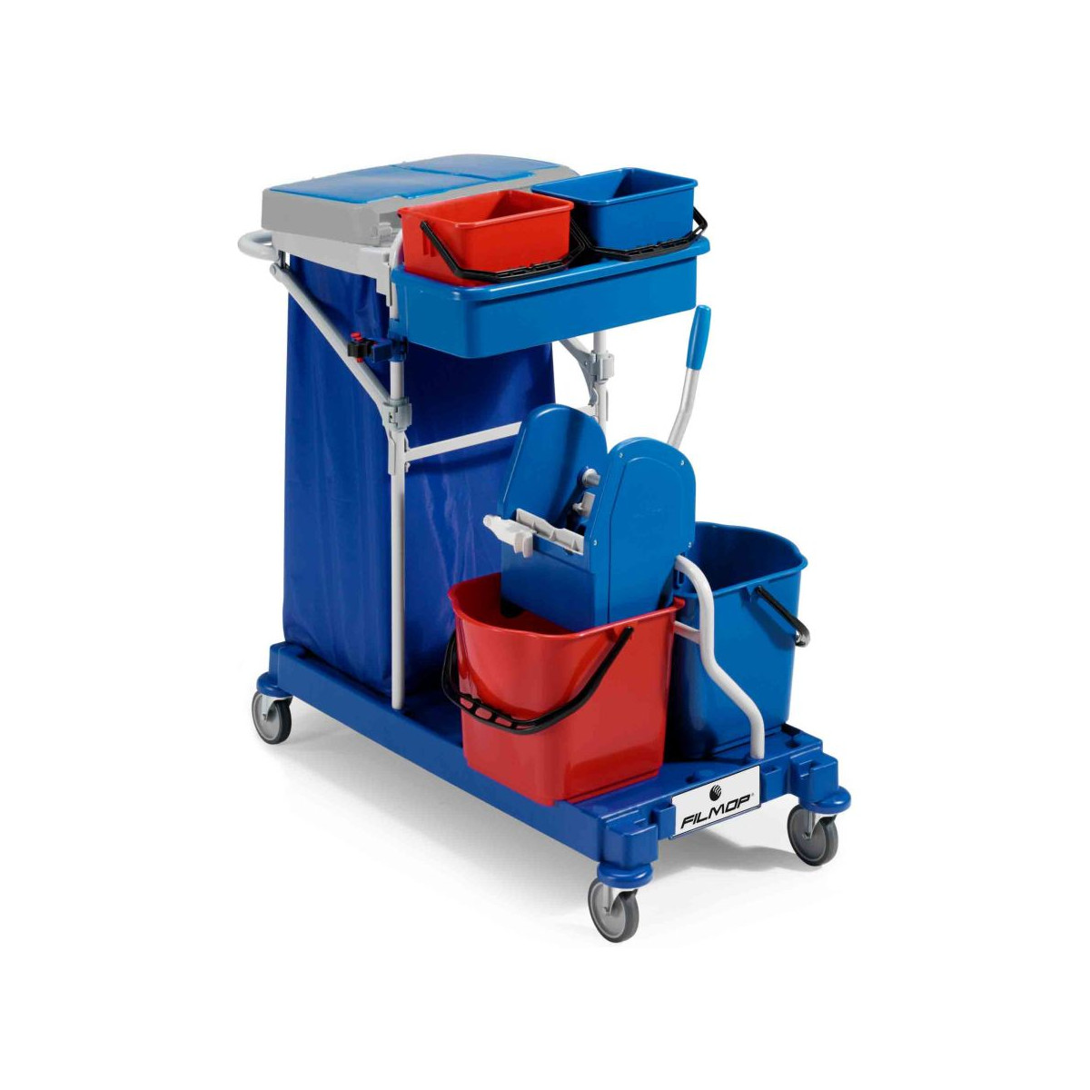 Wózek wielofunkcyjny, idealny do miejsc, w których wymagane jest odkurzanie, zbieranie śmieci, mycie podłóg i czyszczenie powierzchni