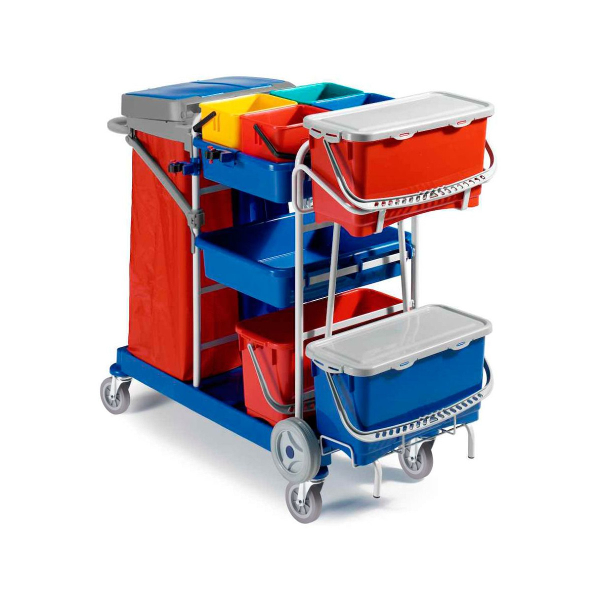 - Wózek Rilsan przeznaczony do transportu wiader Top-Down ® z namoczonymi mopami z pralni na oddział, na którym znajduje się wózek wielofunkcyjny