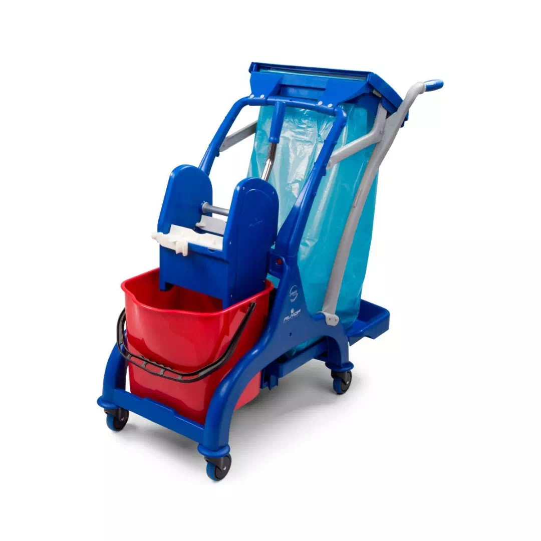Wózek serwisowy Arka to wielofunkcyjny wózek, idealny do średnio dużych powierzchni, gdzie wymagane jest zbieranie śmieci i mycie podłóg.