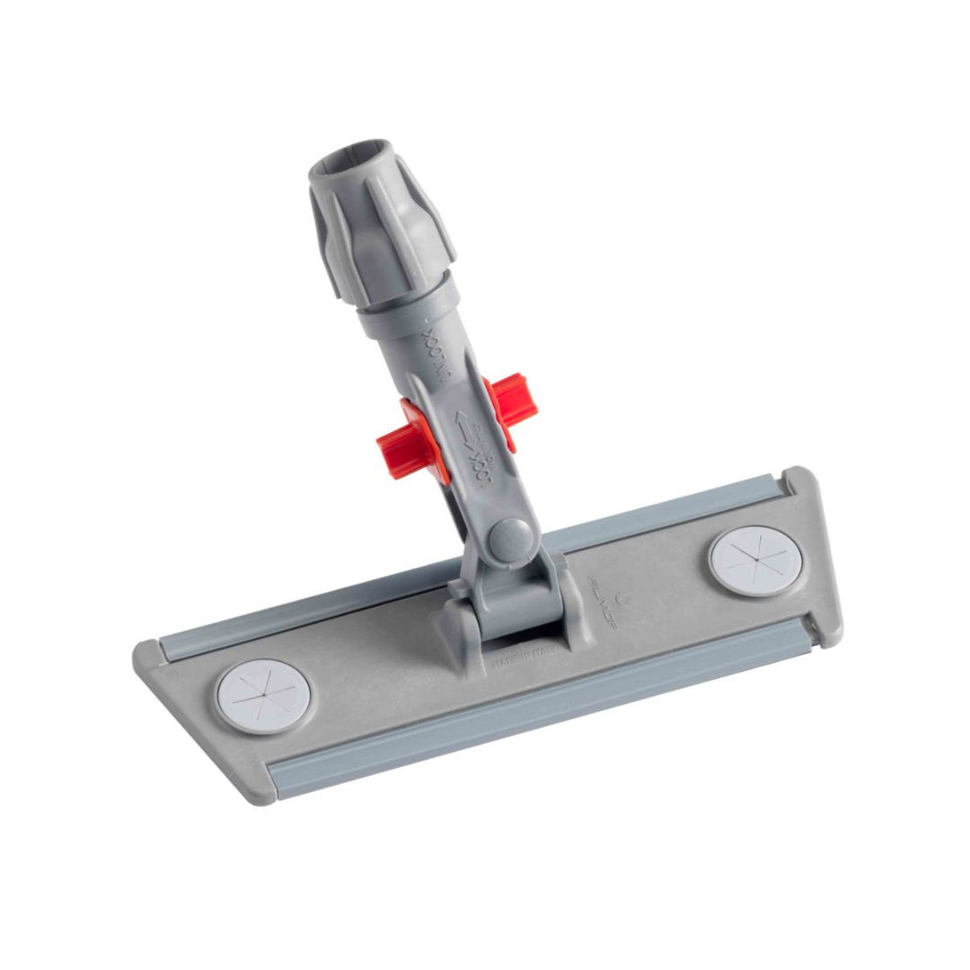- Lock System pozwala blokować boczne ruchy uchwytu mopa i gwarantuje maksymalne przyleganie do powierzchni pionowych, co przekłada się na lepsze rezultaty sprzątania. System ten można włączać i wyłączać, po prostu naciskając stopą małą dźwignię (urządzenie blokujące) w górę lub w dół, bez użycia rąk i bez dalszego schylania się