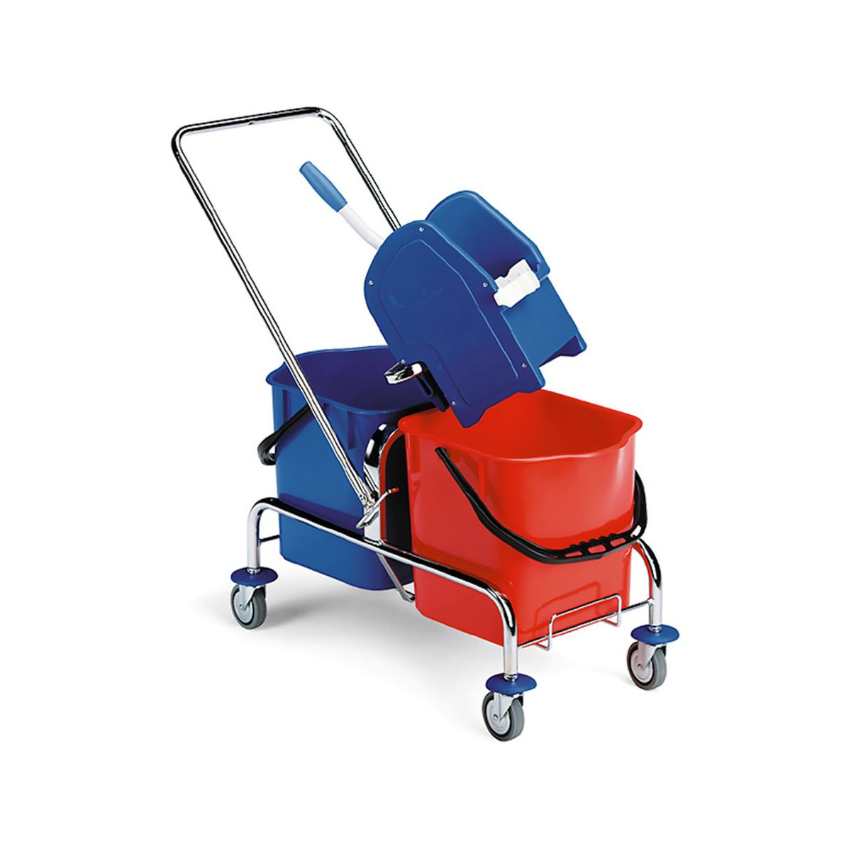 - Dzięki dwóm wiaderkom o pojemności 25 l można oddzielić roztwór czyszczący od wody płuczącej, uzyskując w ten sposób lepsze rezultaty mycia, wyższą higienę, oszczędność detergentów, redukcję czasu pracy przy minimalnym wysiłku operatora.