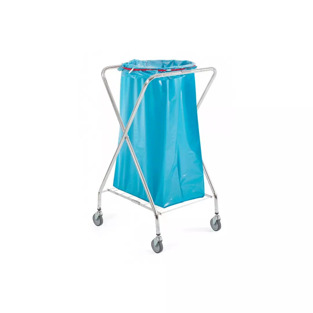 Chromowany wózek X z okrągłym uchwytem na worek 120 L i kółkami ø 80 mm
