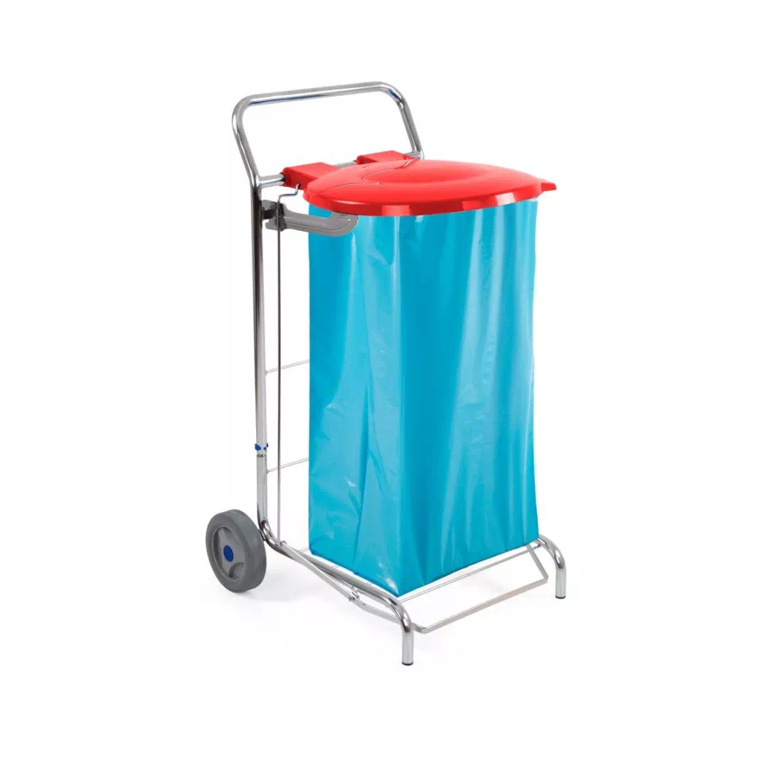 FILMOP 8077 CHROMOWANY WÓZEK Z OKRĄGŁYM UCHWYTEM DO WORKÓW 120 L, PEDAŁ DO OTWIERANIA POKRYWY