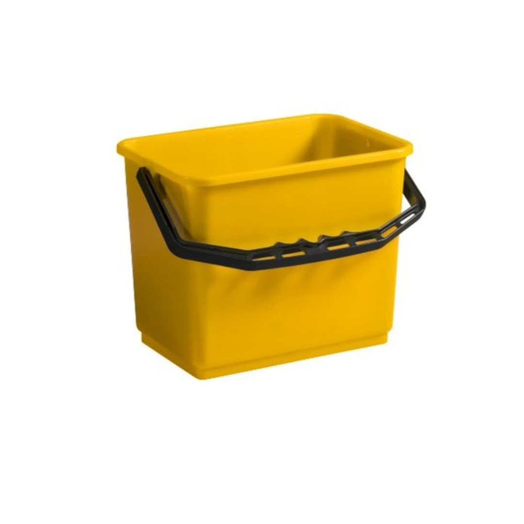 Uniwersalne wiadro z tworzywa sztucznego na ściereczki lub substancje płynne, które może być używane jako pojedyncze wiadro lub jako dodatek do wielofunkcyjnego wózka. Można go używać w różnych obszarach i środowiskach, w których wymagane jest oznaczenie kolorami.