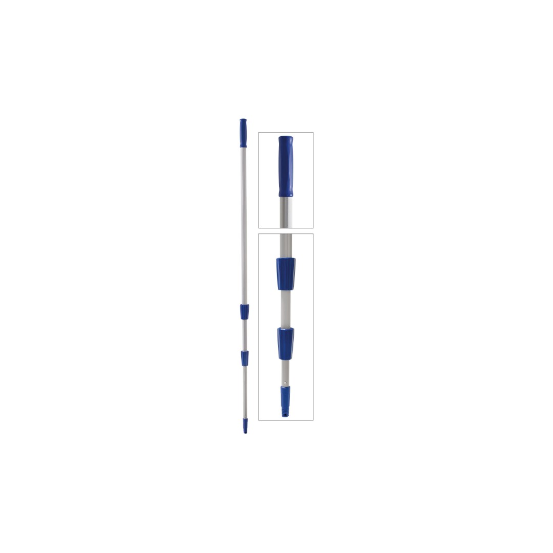 Kij teleskopowy wykonany z aluminium. Dzięki zastosowaniu tego własnie metalu, kij jest bardzo lekki co bardzo ułatwia pracę przy pełnym rozsunięciu. Łączna długość wynosząca 9 metrów pozwala na używanie kija do sprzątania wysokich celów bez potrzeby używania drabiny.