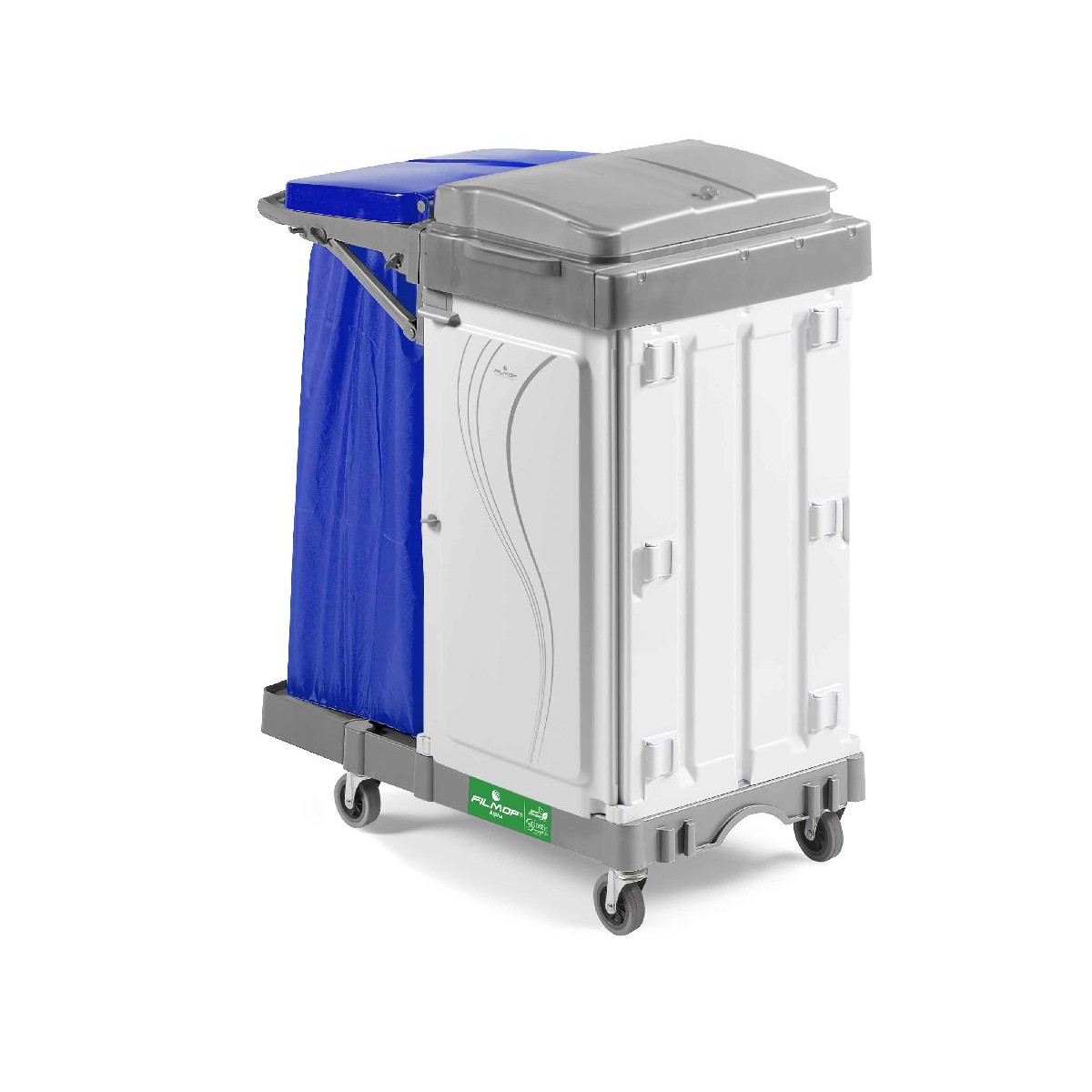 - Pionowe ramy gwarantują wysoką higienę, gdyż komora na odpady jest zawsze oddzielona od pozostałych komór wózka. Posiada otwory na kosze boczne.
