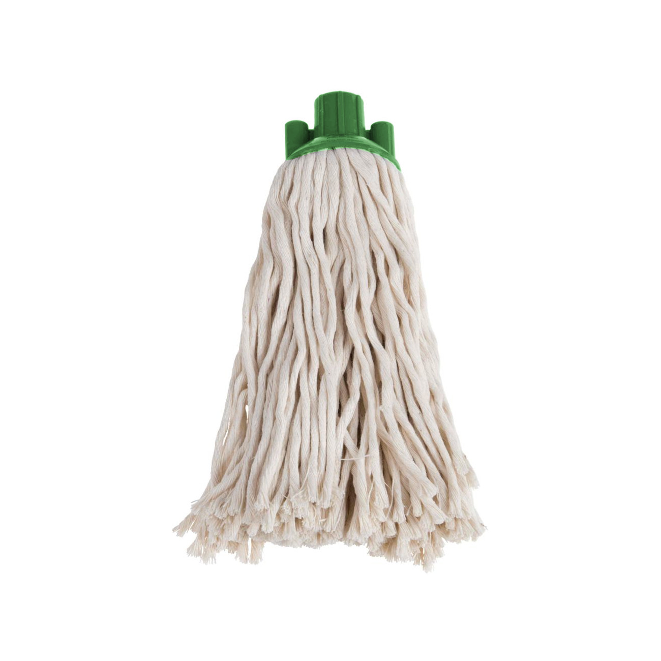 Mop klasyczny, włókna bawełniane cięte, nakręcany na kij, 280g, mocowanie w kolorze zielonym