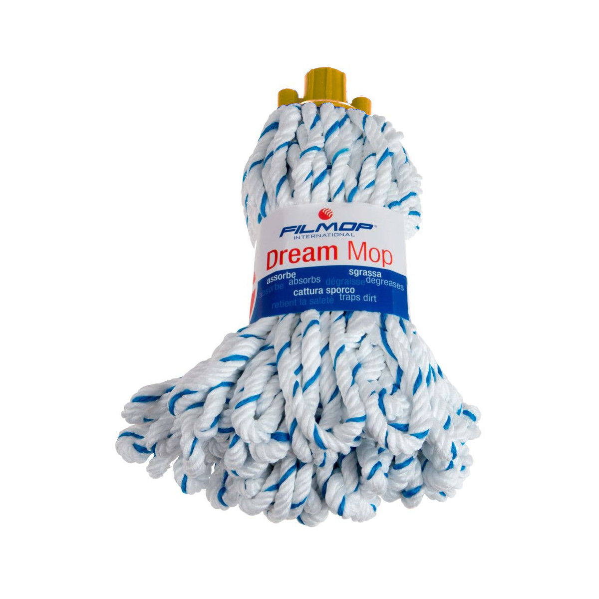 Mop Master Lux wykonany z wysokiej jakości włókna mikrofazowego. Gruba przędza zakończona pętelkami z żółtym mocowaniem. Idealny do każdego rodzaju podłogi w małych i średnich środowiskach