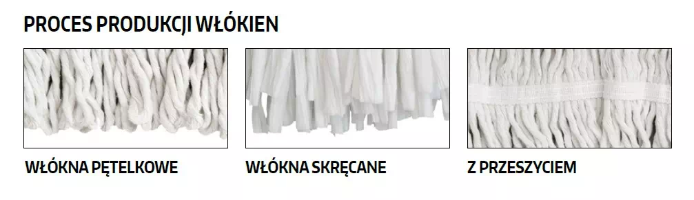 - Skręcona przędza zapobiega strzępieniu się mopa i zapewnia dłuższą żywotność mopa