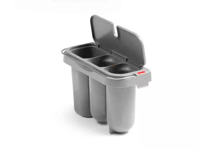 Wysokiej jakości platsikowy pojemnik z funkcjonalnymi trzema przegrodami. Wyposażony w pokrywe i uchwyt ułatwiający przemieszczanie.