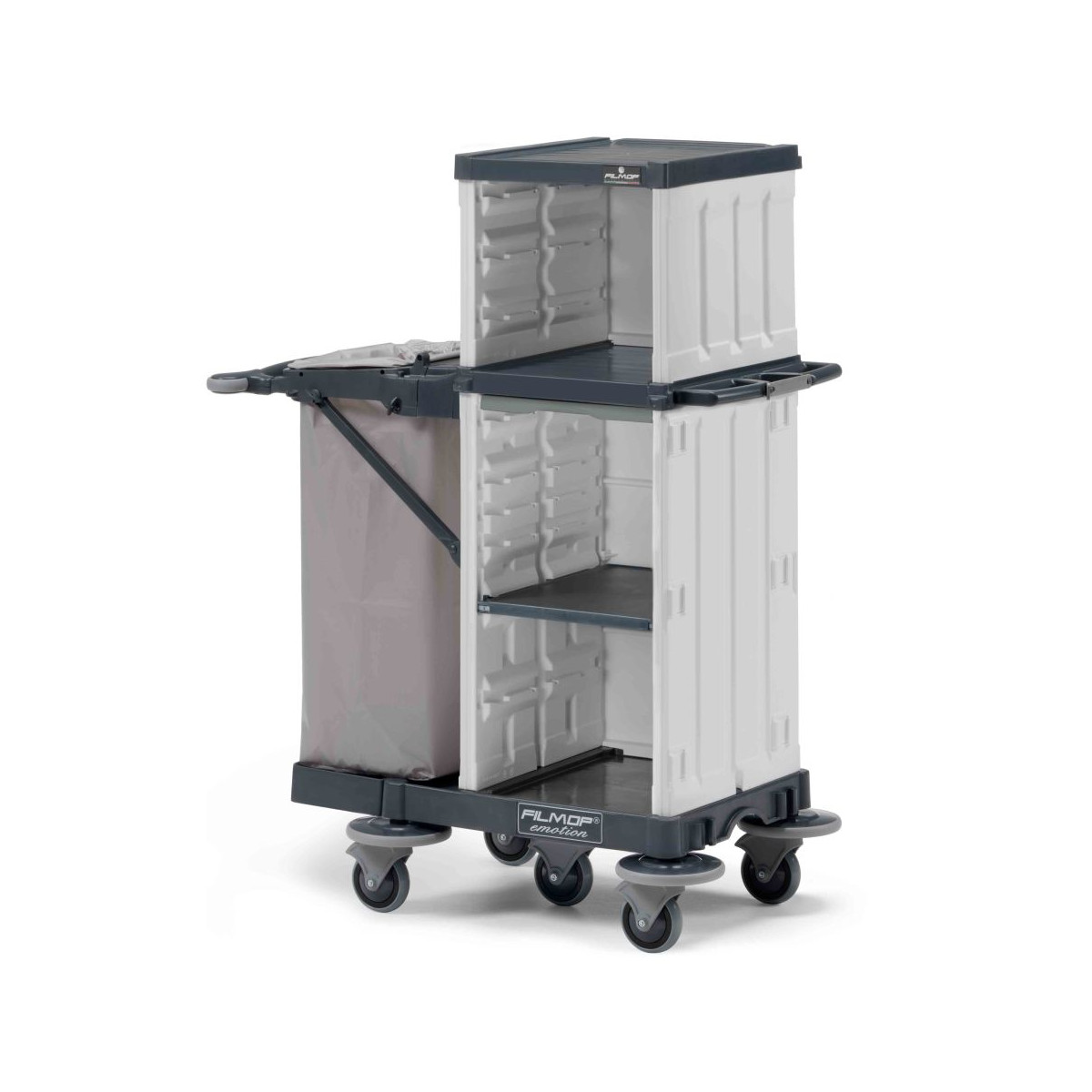 Wózki z serii Emotion to linia wózków Filmop do ogólnego i profesjonalnego sprzątania w hotelach. Wózki Emotion są poręczne, mocne, niezwykle modułowe i wykonane z wysokiej jakości polipropylenu, od podstawy, po ramy pionowe, półki i wszystkie inne akcesoria. Otwarte lub całkowicie zamknięte - które gwarantują najwyższą higienę i maksimum bezpieczeństwa.