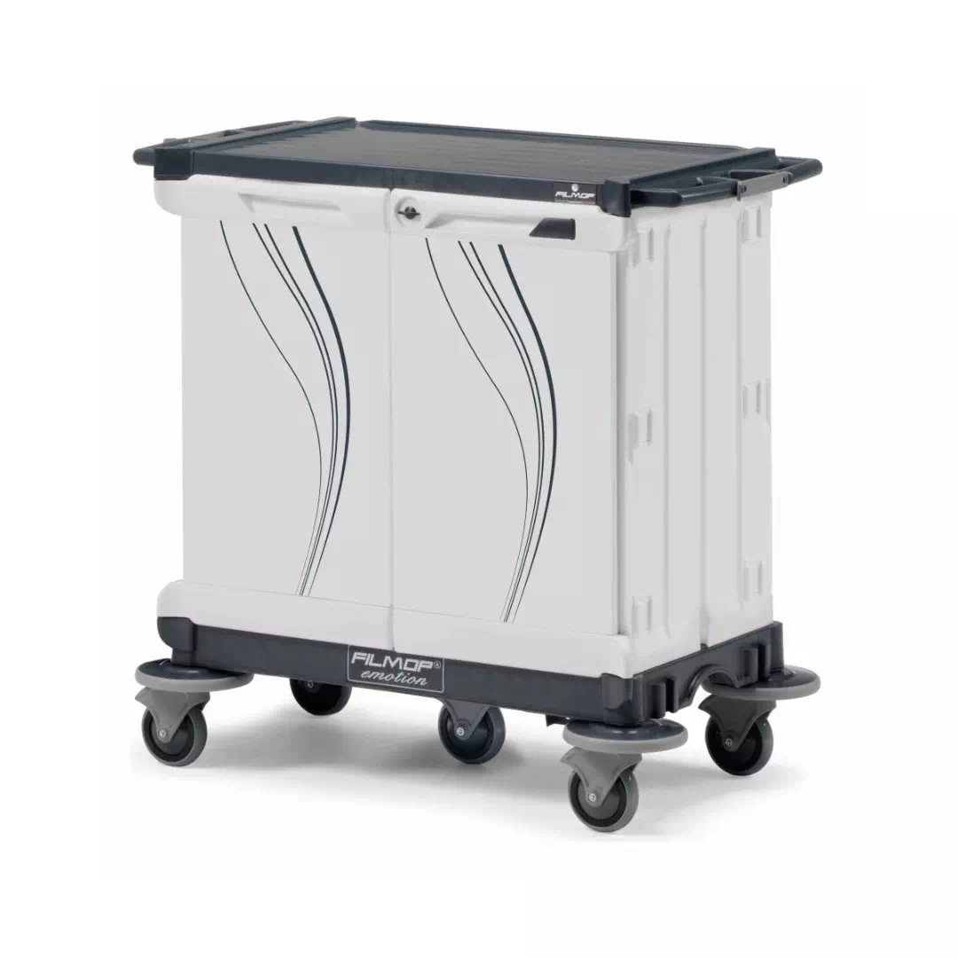 Wózki z serii Emotion to linia wózków Filmop do ogólnego i profesjonalnego sprzątania w hotelach. Wózki Emotion są poręczne, mocne, niezwykle modułowe i wykonane z wysokiej jakości polipropylenu, od podstawy, po ramy pionowe, półki i wszystkie inne akcesoria. Otwarte lub całkowicie zamknięte - które gwarantują najwyższą higienę i maksimum bezpieczeństwa.