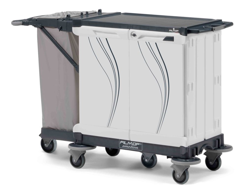 Wózki z serii Emotion to linia wózków Filmop do ogólnego i profesjonalnego sprzątania w hotelach. Wózki Emotion są poręczne, mocne, niezwykle modułowe i wykonane z wysokiej jakości polipropylenu, od podstawy, po ramy pionowe, półki i wszystkie inne akcesoria. Otwarte lub całkowicie zamknięte - które gwarantują najwyższą higienę i maksimum bezpieczeństwa.