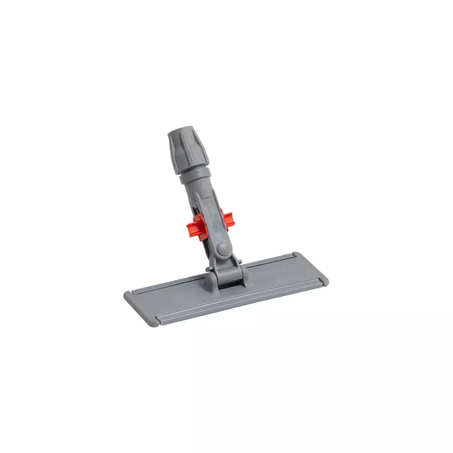 Stelaż do mopa z blokadą obrotu. Wykonany z wysokiej jakości tworzyw sztucznych. Dwa paski z systemem ABS dla zapewnienia jak najlepszej stabilności mopa podczas sprzątania. System blokady obrotu gwarantuje lepsze doczyszczanie niektórych miejsc i powierzchni. Dzięki uniwersalnemu uchwytowi, istnieje możliwość zamontowania kija o średnicy gwintu od 20 do 24 milimetrów.