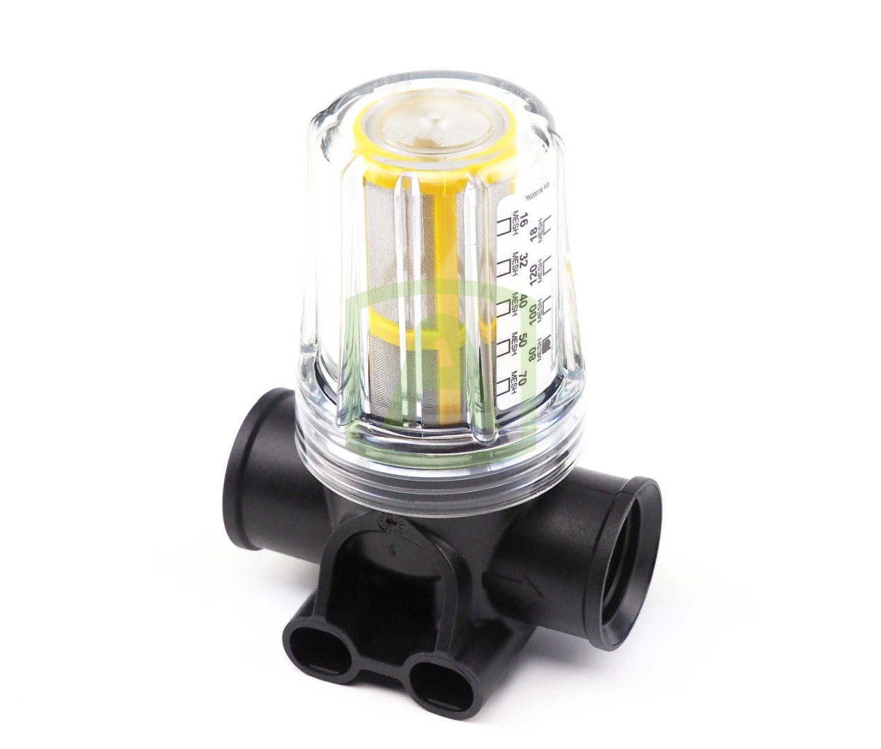 Korpus filtra wykonany z przeźroczystego plastiku umożliwiającego kontrolę zabrudzenia.