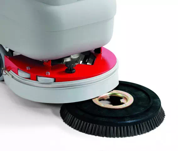 Prosty sposób montowania szczotki lub uchwytu pada niewymagający odwracania szorowarki. Konstrukcja maszyny czyszczącej pozwala na szybkie zakładanie jak i zdejmowanie szczotki czy uchwytu pada.