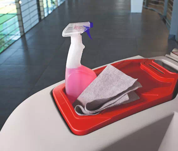 Elementy, których dotyczy codzienna konserwacja są wyróżnione żółtym kolorem. Po zakończeniu tury, operator może szybko i dokładnie zlokalizować elementy wymagające sanityzacji, nie tracąc czasu.